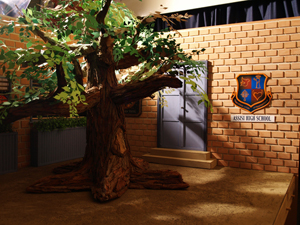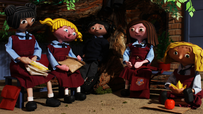 Assisi High is Tegan's school, where she attends classes with her fellow classmates and learns all about cooking meat from Mrs Poodle. There were three parts to the Assisi High set - the exterior miniature for the establishing shot, the playground where the kids have their lunch and of course the Home Economics classroom where most of the film's action takes place.